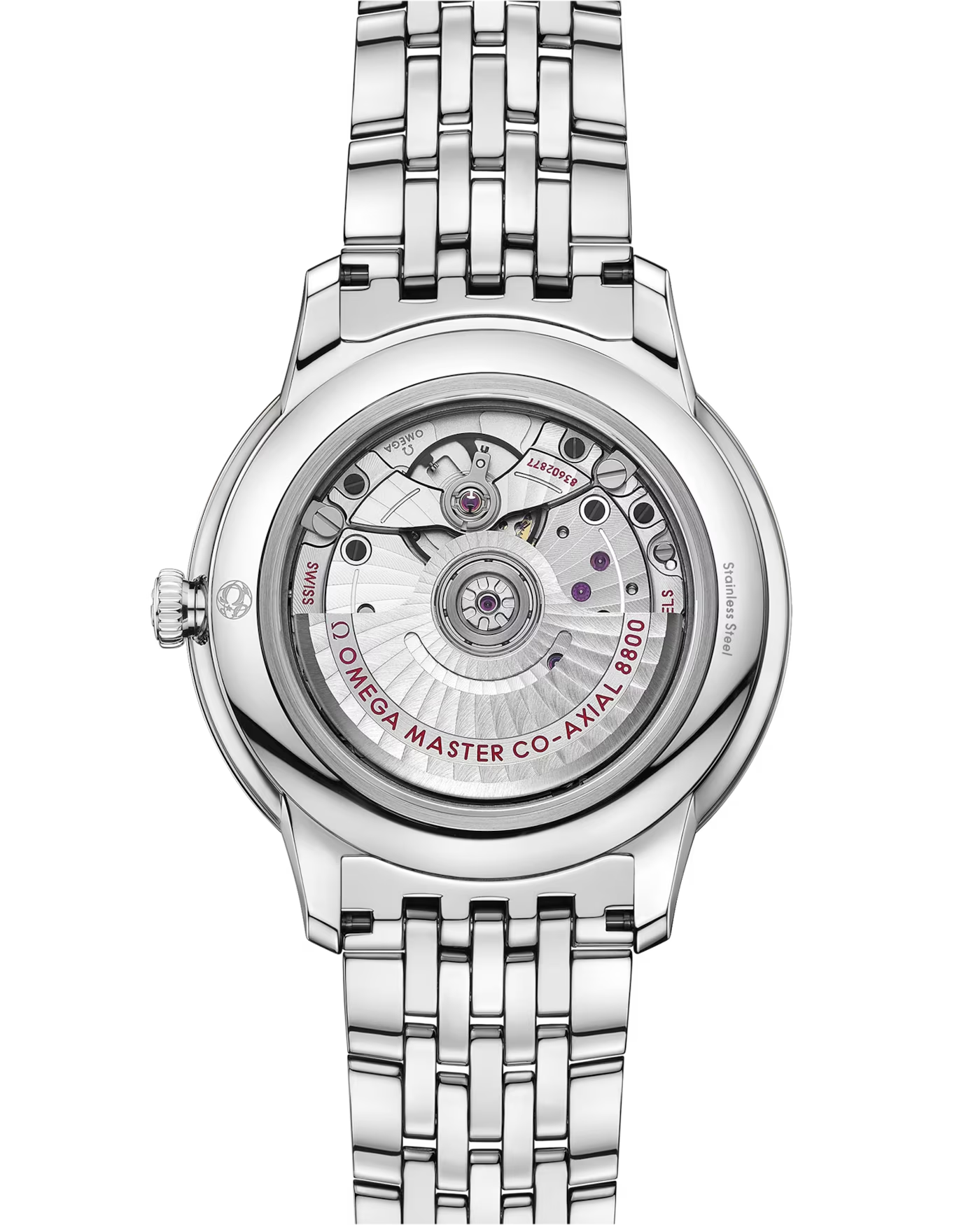 This Master Chronometer certified watch is presented on a stainless steel bracelet and is driven by the OMEGA Master Co-Axial Calibre 8800, which can be admired through the scratch-resistant sapphire crystal caseback.