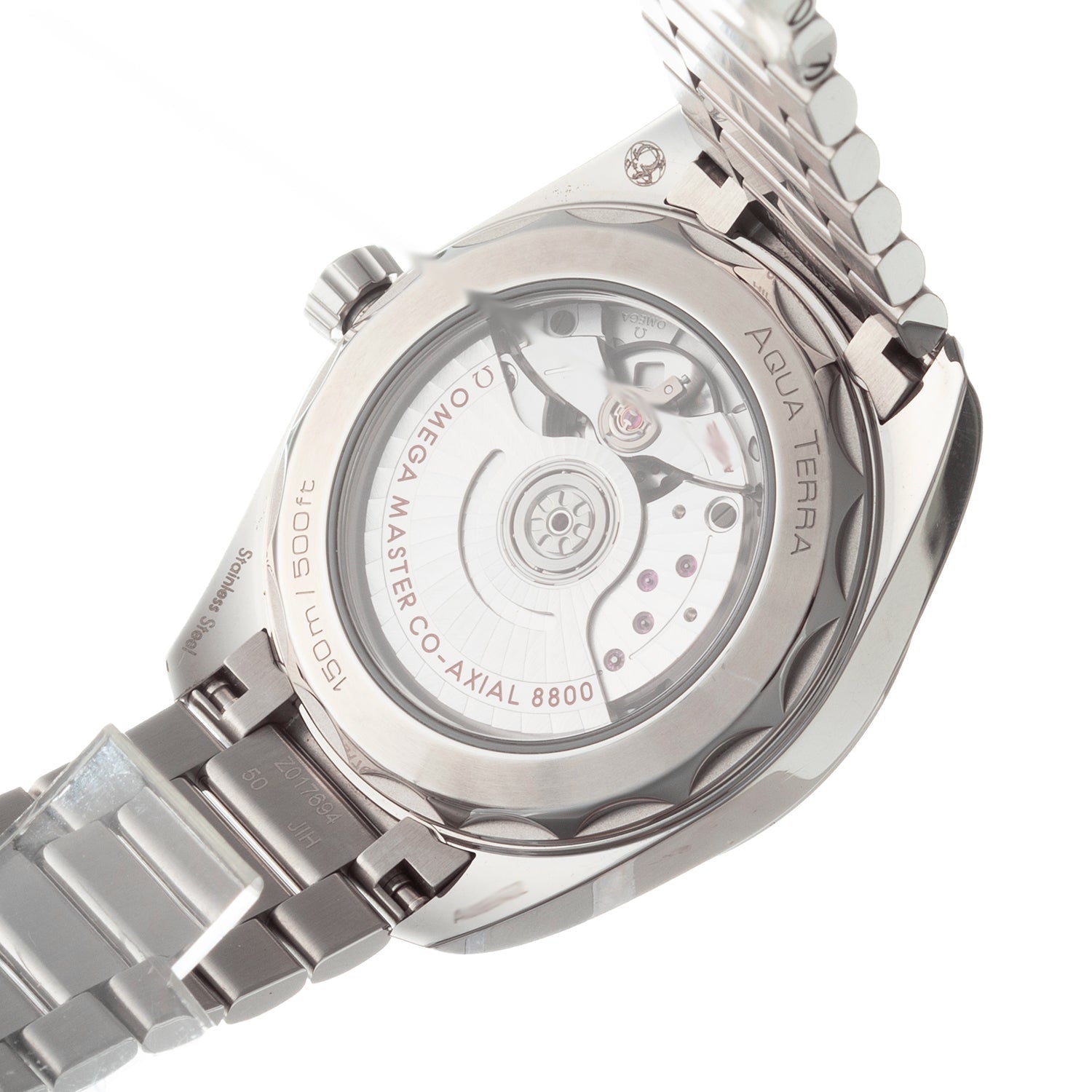 Omega Seamaster Aqua Terra 'Shades' wristwatch (ref. 220.10.38.20.13.003), featuring the self-winding caliber 8800 co-axial movement; terracotta red lacquered & sun-brushed dial; date window at 6 o'clock; and 38mm, stainless steel case on a stainless steel link bracelet.