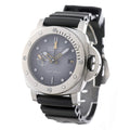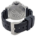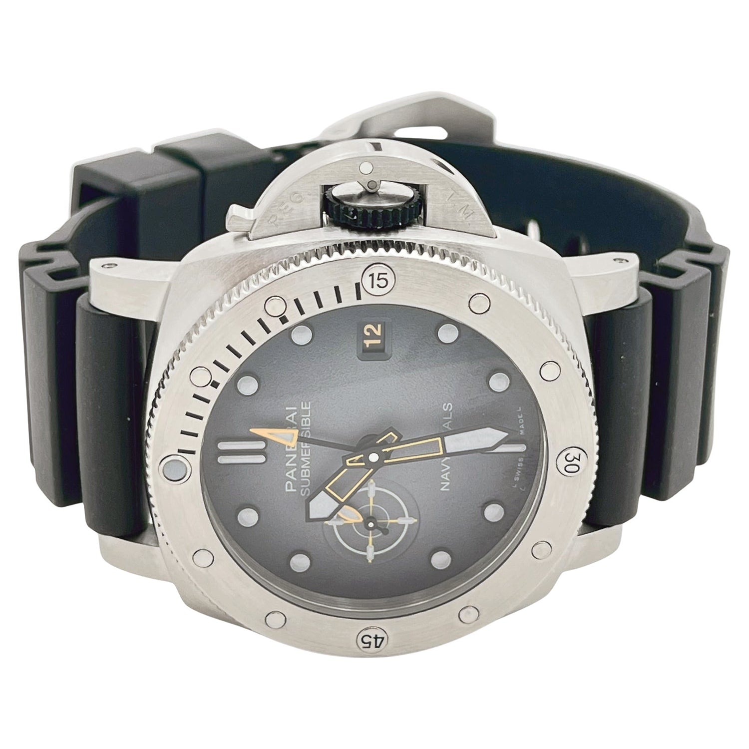 Panerai Submersible GMT Navy SEALs (ref. PAM01323), featuring the P.900/GMT calibre automatic movement with a 3-day power reserve when fully wound; degradé anthracite gray dial; dual time zone by central GMT hand; date aperture at 3 o'clock; small seconds subdial at 9 o'clock; and 44mm, stainless steel case on a black rubber strap secured by the Panerai steel buckle.